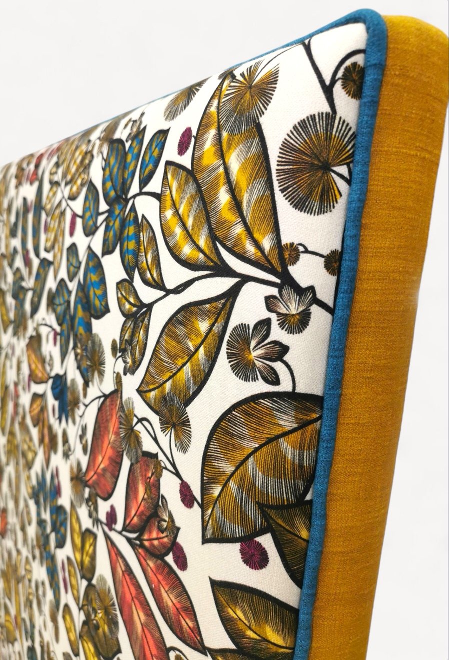 Tissu éditeur Thévenon, finitions passepoil et cadre tissus éditeur Prestigious Textiles.
