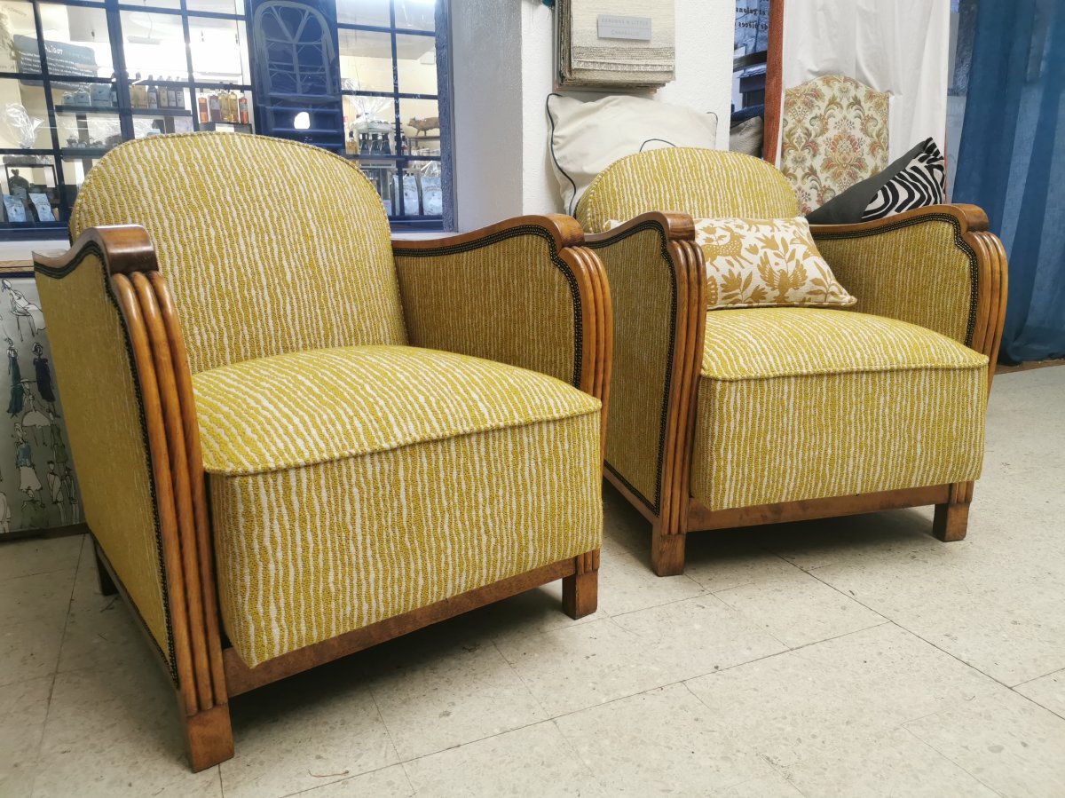 Garniture de l'assise de deux fauteuils année 60 d'inspiration art déco