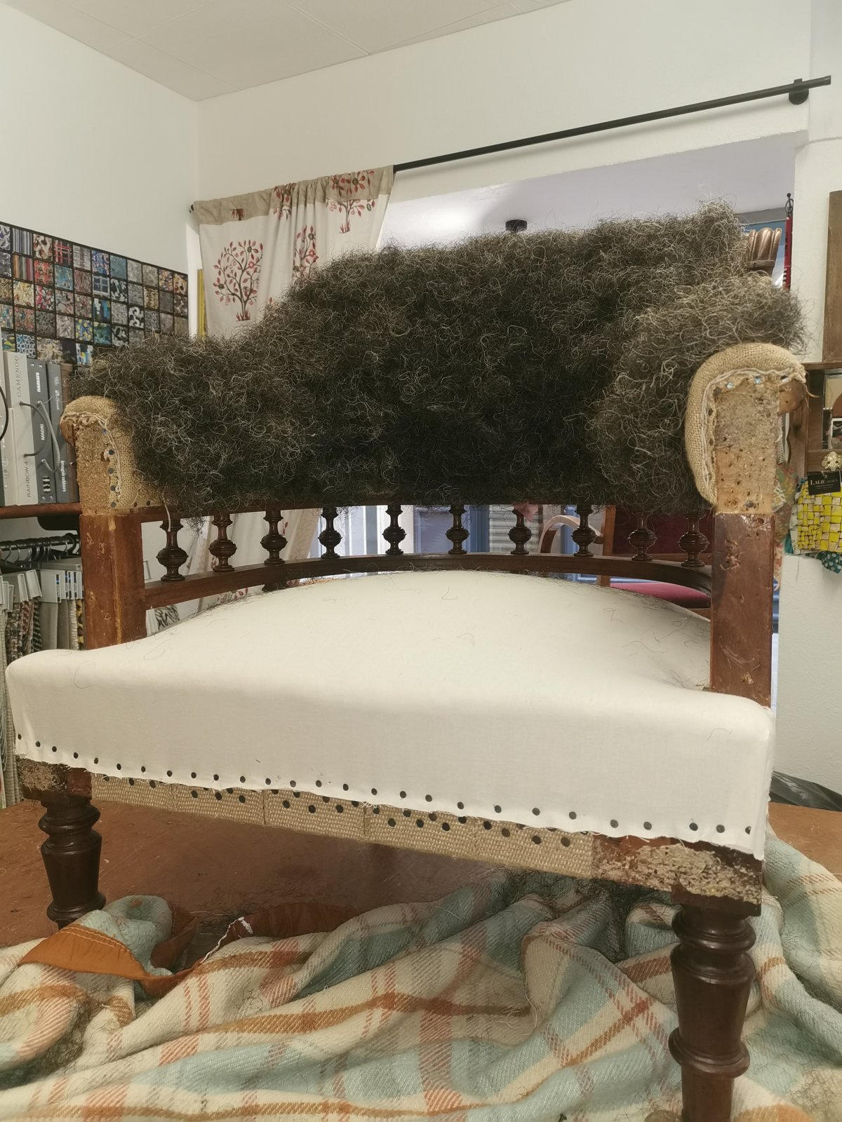 Pose de la ouate sur le dossier d'u fauteuil crapaud